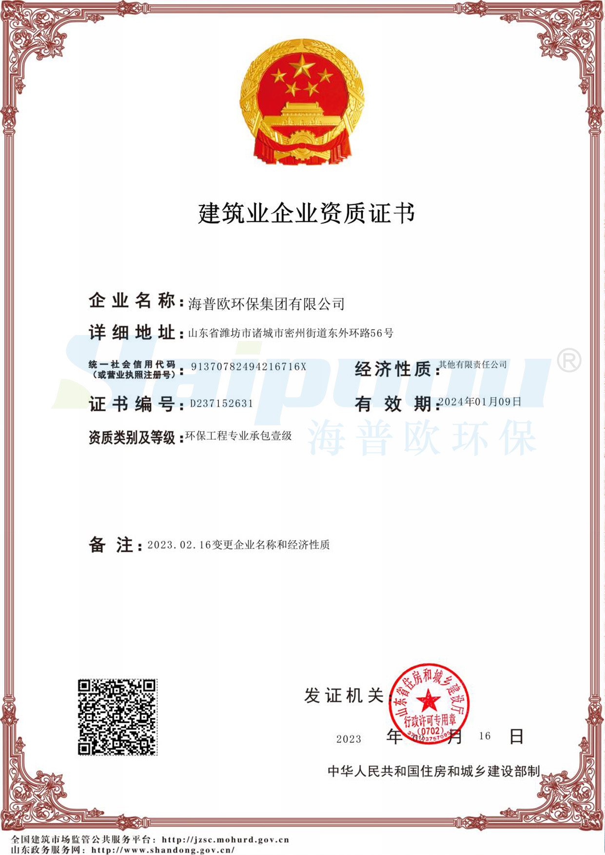 擁有環(huán)保工程專(zhuān)業(yè)承包資質(zhì) 叁級(jí)、安全生產(chǎn)許可證
