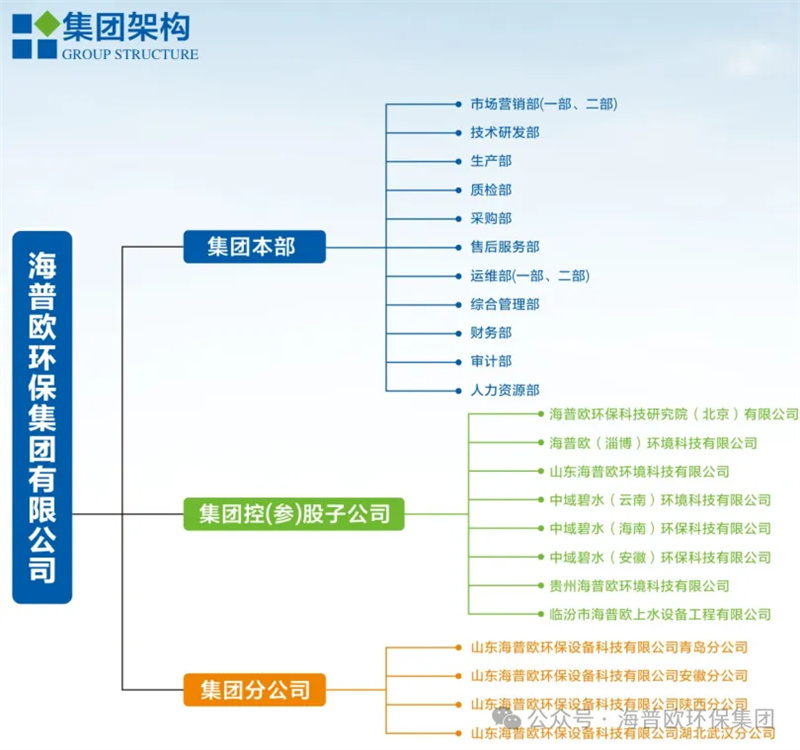 公司擁有環(huán)境工程專項(xiàng)設(shè)計(jì)乙級(jí)資質(zhì),環(huán)保工程專業(yè)承包壹級(jí)資質(zhì)、市政公用工程施工總承包二級(jí)資質(zhì)、建筑機(jī)電安裝工程專業(yè)承包二級(jí)資質(zhì)等資質(zhì),并通過了ISO質(zhì)量、環(huán)境、職業(yè)健康安全管理體系認(rèn)證。同時(shí)取得了水污染治理設(shè)施運(yùn)維能力評(píng)價(jià)二級(jí),實(shí)現(xiàn)從設(shè)計(jì)、生產(chǎn)、安裝、調(diào)試、到運(yùn)維的產(chǎn)業(yè)鏈一條龍服務(wù)。集團(tuán)架構(gòu)