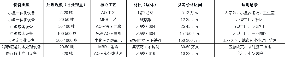 二、2025 年污水處理設(shè)備最新價(jià)格參考范圍