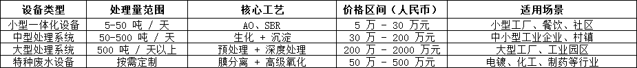 二、廢水處理設(shè)備價(jià)格參考范圍
